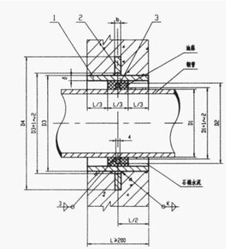 剛性防水套管適用于管道穿墻處不承受管道振動和伸縮變形的構(建)筑物,對于地震設防要求的地區,如采用剛性防水套管,應在進入池壁或建筑物外墻的管道上就近設置柔性連接,A型適用于鋼管。